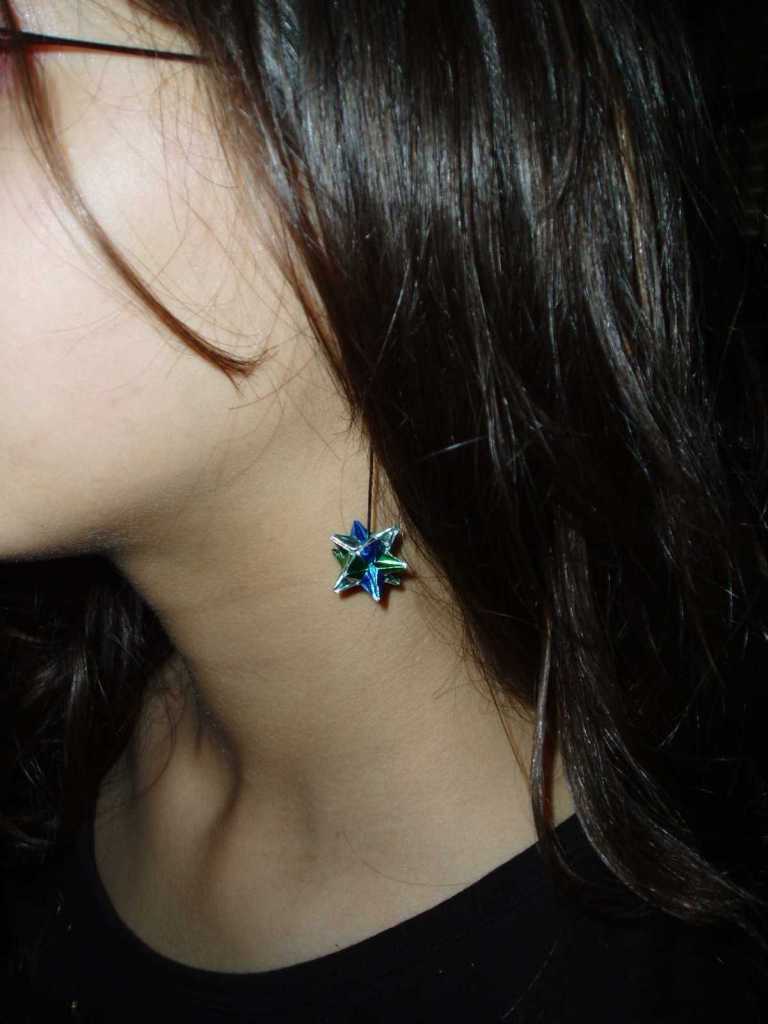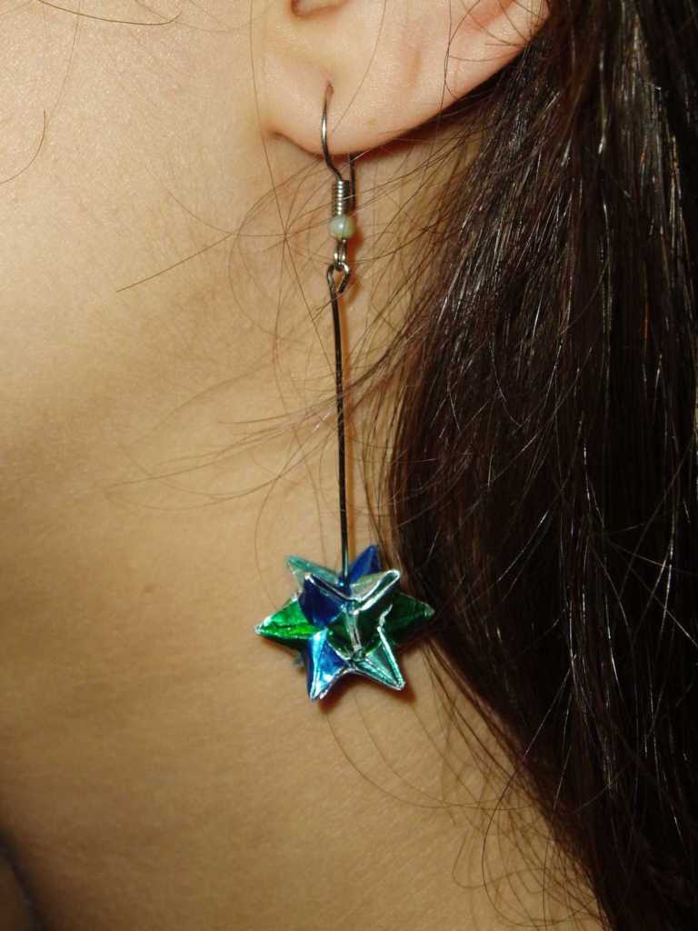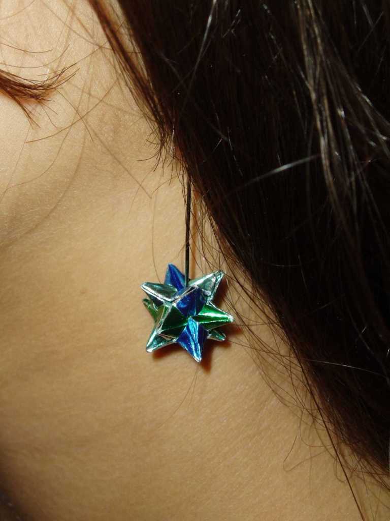 These earrings folded by my wife and me from six 2.5cm american foil squares
